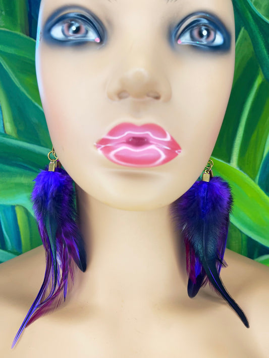 Handcrafted Medium Feather Earrings - Purple Eclipse