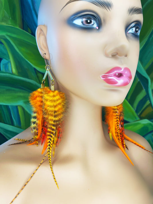 Handcrafted Medium Feather Earrings - Tangerine Sunrise