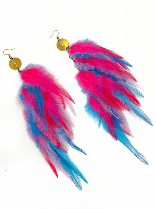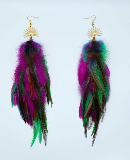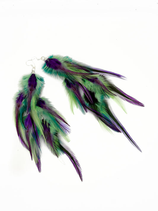 One of a Kind Long Bohemian Feather Earrings - Mardi Party Gras