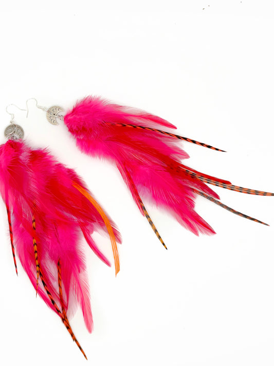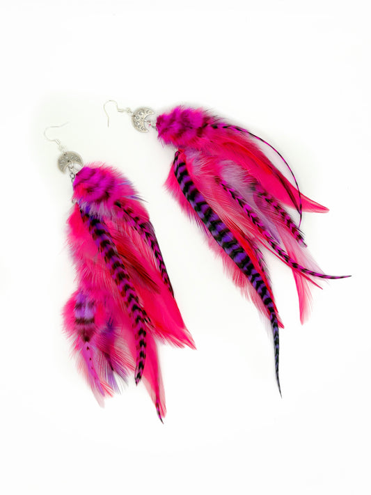 Long Bohemian Feather Earrings – Punk Pink