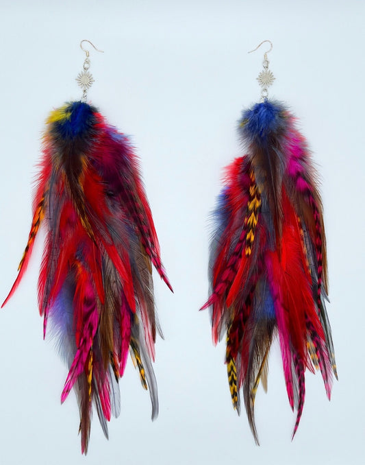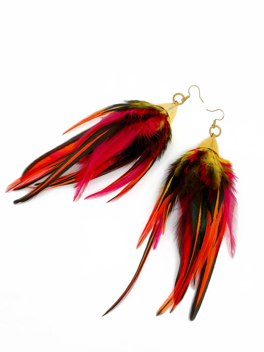 Long Bohemian Feather Earrings – Feathered Flames