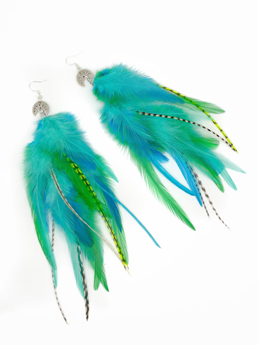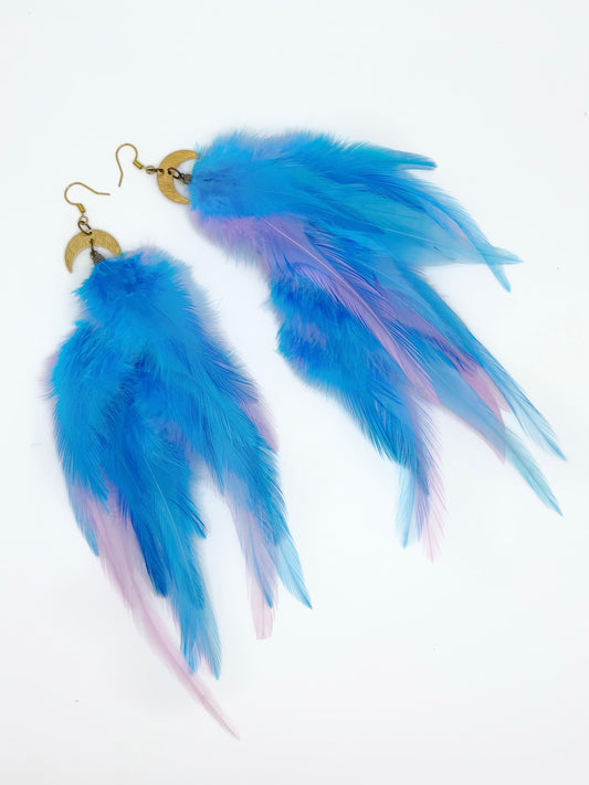 Long Bohemian Feather Earrings - Blue Moons