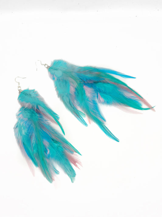 Long Bohemian Feather Earrings – Aquatic Blues