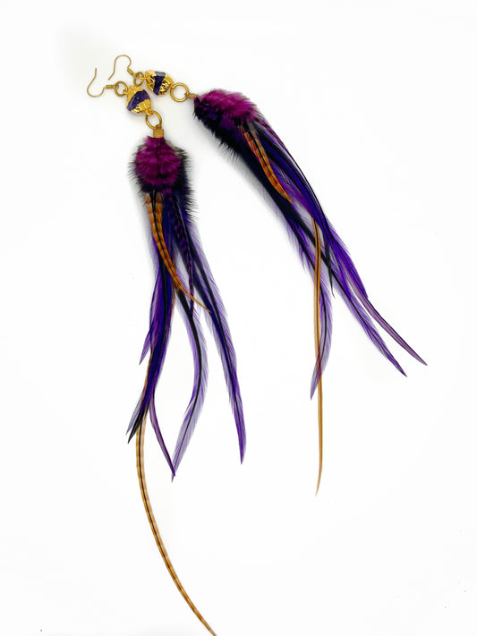 Long Bohemian Feather Earrings – Purple Wildflowers